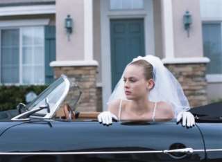 الشابة الأمريكية حفل زفافها حذاء مطاطي أزرق ارتداء الكعب العالي
