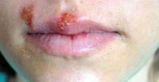 1. ظهور فقاعة صغيرة أو عدة فقاعات على الشفاه وحول الفم، والتي تمتلئ بسوائل قبل أن تتقشّر.